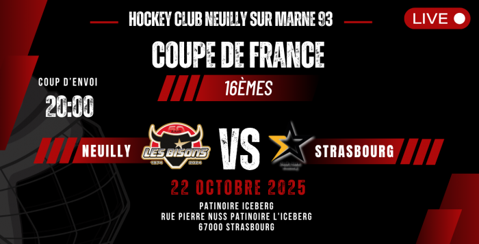 Pour la 1ère journée du Championnat de France de la saison 2025-2026, ce samedi 4 octobre les Bisons confronteront les Comètes de Meudon à 18h30 à la patinoire de Neuilly.