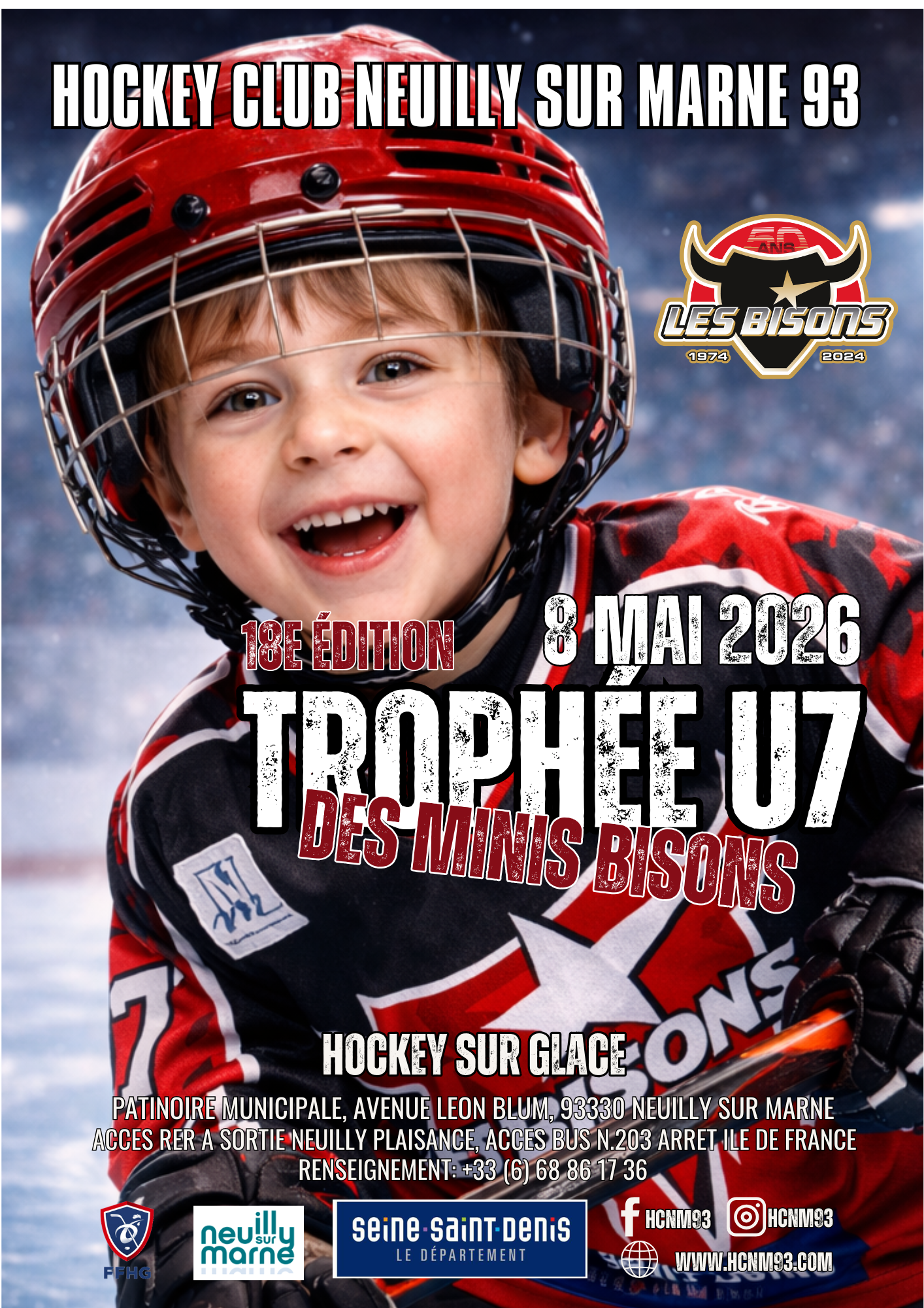 Le Hockey Club Neuilly sur Marne 93 a le plaisir d’annoncer l’organisation de son 18e édition du Trophée U7 des Minis Bisons, qui se déroulera le vendredi 8 mai 2026.